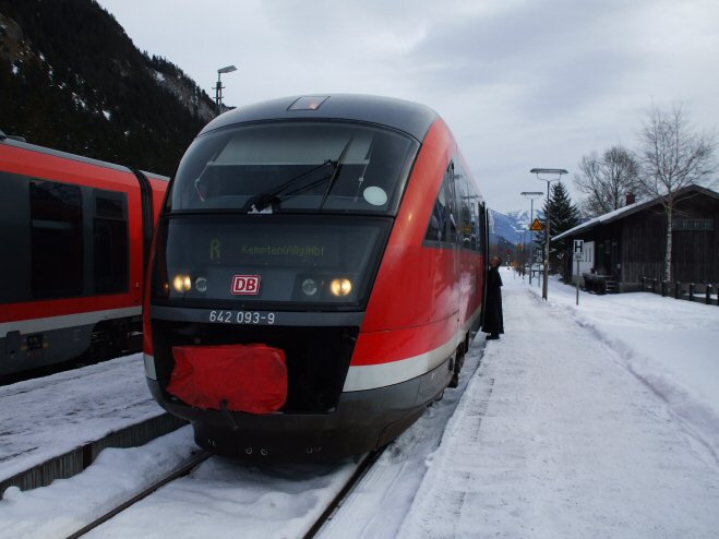 Von Reutte in Tirol geht es weiter mit dem 642 093-9 als R 5518 von Reutte in Tirol nach Kempten (Allg.) Hbf. Unterwegs gibt es mehrere Zugkreuzungen die zu einer Fotopause einladen - so hier Pfronten-Steinach...