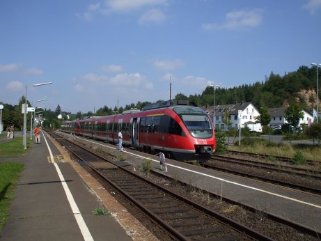 ... bis kurz vor Olef, wo der ehemalige VT 798 angezuckelt kommt ...