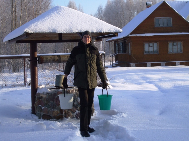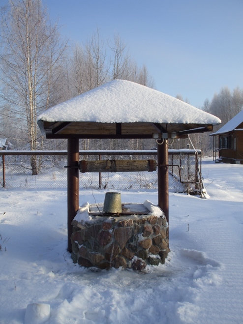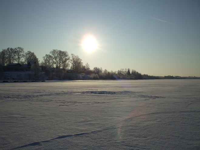Am nächsten Morgen bin ich dann um etwa 11 Uhr aufgestanden und wir haben uns einen ruhigen Tag gemacht. Den Wasserdienst habe ich übernommen, da es für mich eine richtige Faszination war, bei der Kälte aus dem Brunnen zu schöpfen. Am Nachmittag haben Masha und ich einen Spaziergang auf der komplett zugefrorenen Wolga gemacht - wiederum eine Faszination. Ein großer Fluss - an der Stelle ist er etwa 2 km breit. Zudem war das Eis komplett mit Schnee bedeckt, der bei den Minusgraden nicht mehr knirschte, sondern richtig quietschte. Zudem gefror bei dem Spaziergang der Atem am Schal und der Kapuze, so dass sich langsam ein weißer Kranz bildete.