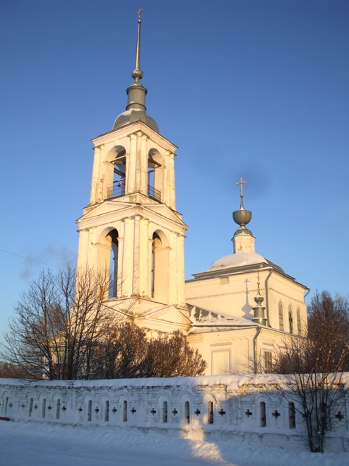 Im Winter war ich zuerst bei meiner Freundin, dann bei meiner Frau in Moskau zu Gast und nach dem Neujahrfest wurden wir von deren Eltern eingeladen, mit ins Dorf in die Nähe nach Kaljasin bzw. Vyßokoje zu fahren. Allerdings ging es dieses Mal leider nicht mit dem Zug dorthin, sondern mit dem Auto. Eigentlich sollte mit zwei Autos gefahren werden, doch ein paar von Mashas Geschwistern wollten nicht mit. So brauchte ich dann selbst nicht fahren, was letztlich auch ganz gut war. Zuvor waren wir in der Göttlichen Liturgie in der "Fakultätskirche" St. Nicolai am Feiertag des Hl. Johann Kronstadtskij (Johannes von Kronstadt) und zu diesem Feiertag war das Epitrarchil zur Verehrung da. Der Heilige Johann Kronstadtskij lebte 1829 - 1908 und war unter anderem ein Wundertäter und viele Leute haben versucht, ihn nur zu berühren. Es kamen Gläubige zu ihm, die von ihm Heiligung erwarteten und bekamen.