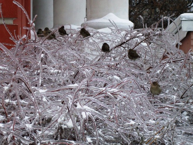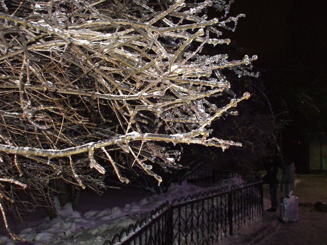 Die Folgen des Eisregens - ein Zentimeterdicker Eisbelag auf den Ästen und Zweigen.