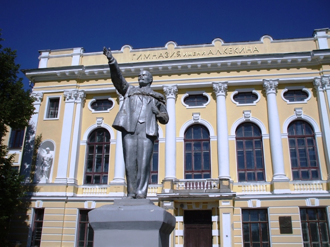 Gleich am Beginn auf dem Weg in die Stadt begrüßte uns Lenin, der offenbar auch wohl in die Jahre gekommen ist. Die "kleinen" Kratzer deuten für mich darauf hin, dass er wohl irgendwann nach der Revolution (zur Demokratie) einmal gestürzt werden sollte. Entweder war er so hartnäckig, dass es nicht klappte, oder er ist in der Mitte einfach durchgebrochen und wieder zusammengesetzt worden. Zumindest ist dies der lädierteste Lenin, den ich je gesehen habe. (Abgesehen vom Original im Mausoleum auf dem Roten Platz, der ja angeblich nur noch aus 10% echtem Lenin bestehen soll - aber in dem Verherrlichungshäuschen für Retro-Kommunisten war ich nicht).