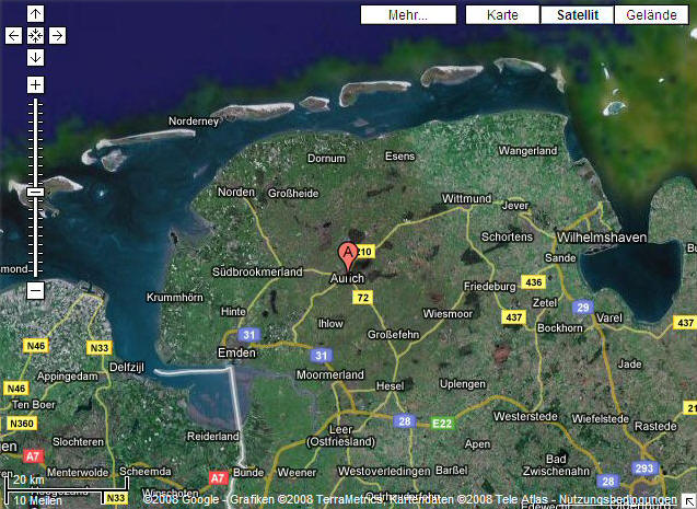 Und jetzt die Größe Moskaus einmal im Vergleich zu Ostfriesland im gleichen Maßstab: Zunächst Ostfriesland...