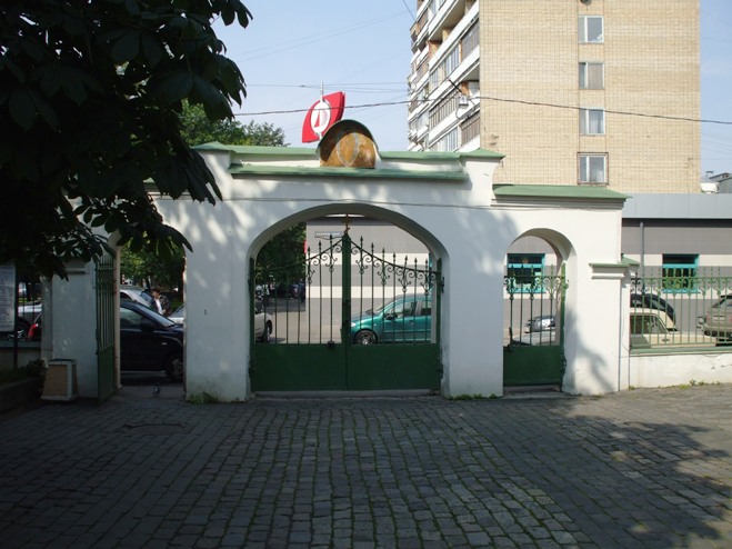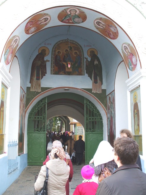 Das Eingangstor des Klosters. Über dem Tor links ist der Hl. Sergij von Radonesch abgebildet.