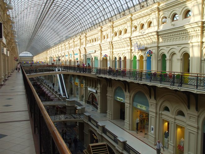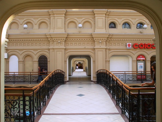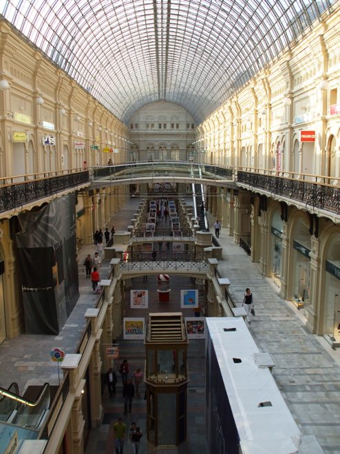Das Kaufhaus hat drei Etagen nach russischer Zählung, hier einmal ein Blick durch das vom Sonnenlicht durchflutete Haus, in dem trotz sommerlichen Temperaturen eine angenehme Luft war.