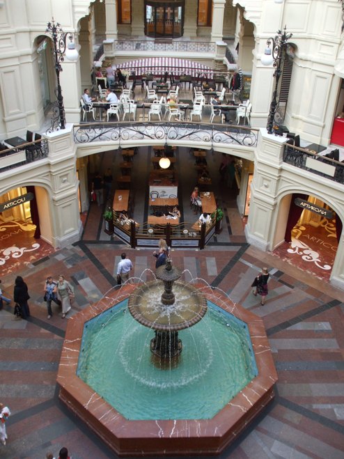 In der Mitte des GUM befindet sich ein Springbrunnen. Mir gefällt an dem Kaufhaus besonders, dass dort nicht die Hektik herrscht, wie in allen anderen Teilen der Stadt. Dies ist tatsächlich eine Oase der Ruhe.