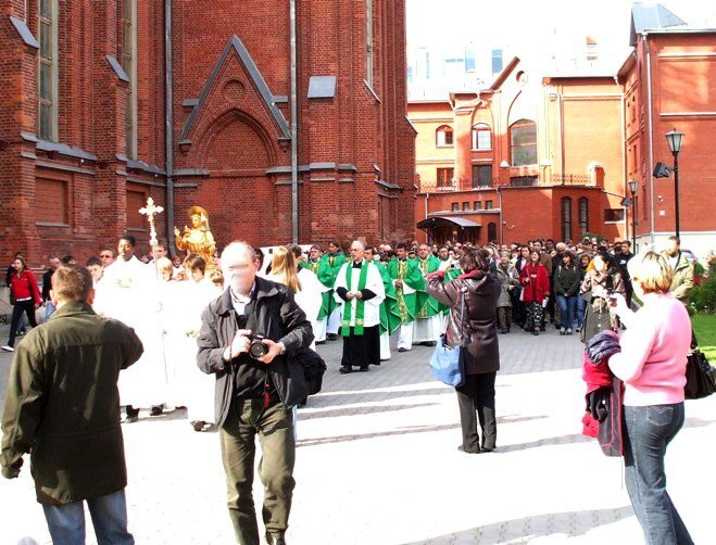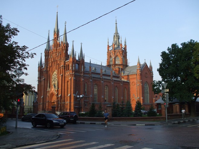 Heute bin ich schon zeitig um 6:30 Uhr aufgestanden, wenn ich mich auch ganz schön gequält habe - aber ich hatte mir vorgenommen zur Heiligen Messe in die katholische Kirche zu fahren. Da ich nicht wusste, wann die Messe dort losgeht, bin ich einfach mal zu etwa halb neun dorthin gefahren. In der Kirche habe ich mich dann erst einmal informiert, wann Kirche ist, die Sonntagszeiten aber nicht gefunden. So habe ich mich in die Kirche gesetzt, wo noch andere saßen und um punkt halb neun ging es dann los - allerdings verstand ich überhaupt nichts. Das lag nicht daran, dass mein russisch nicht ausreicht, sondern dass die Messe in polnischer Sprache gehalten wurde.