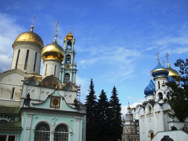Das Kloster Sergijew Possad ist ein sehr altes Kloster und wurde 1340 vom Hl. Sergij von Radonesch gegründet und zählt heute zum UNESCO-Weltkulturerbe. Es ist ein bedeutendes religiöses Zentrum der Russisch-orthodoxen Kirche. Bis zum 18. Jahrhundert wurde es immer wieder ausgebaut und vielfach erweitert, so dass es heute eine große Klosteranlage mit dem Palast des Metropoliten, der Theologischen Akademie im ehemaligen Zarenpalais, der Schatzkammer, der Quelle des Heiligen Wassers und den Mönchsklausen ist. Es gibt zudem acht Wehrtürme und eine Mauer, da sich das Kloster im Laufe der Jahrhunderte verteidigen musste. Da das Kloster sich immer erfolgreich wehren konnte, ist es von Zerstörungen verschont geblieben. Nach der Verstaatlichung durch das kommunistische Regime 1917 war erst 1943 religiöses Leben wieder möglich. Viele Leute pilgern heute zu dem Kloster, um von dem Heiligen Wasser zu trinken oder am Dreifaltigkeitsfest zur Heiligen Ölung.