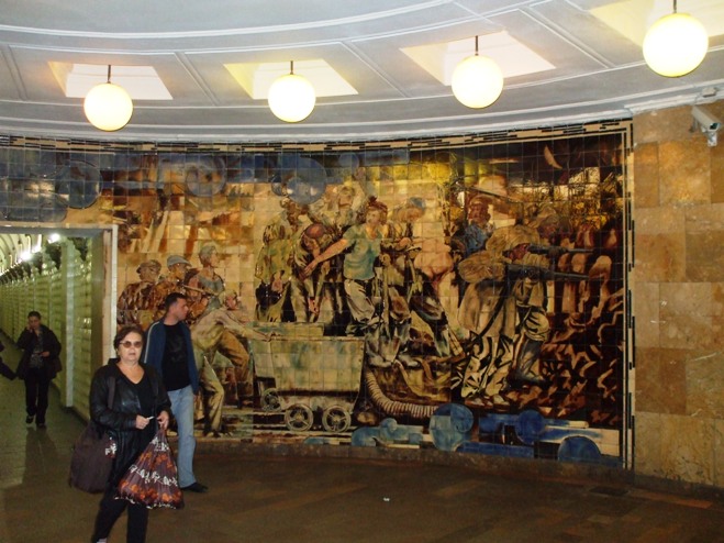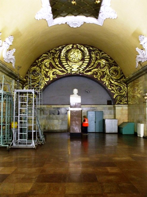 Wie ich gestern ja schon angekündigt habe, möchte ich hier mal eine der vielen Metrostationen ohne viele Worte portraitieren, da sie - wie bereits mehrfach gesagt - viele kleine Museen des Sozialismus sind. Diese Station ist Lenin gewidmet und ist daher beinahe ein Verehrungstempel für den Diktator.