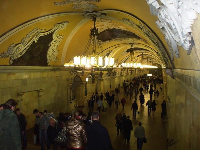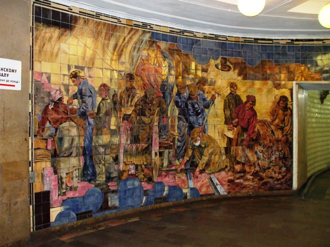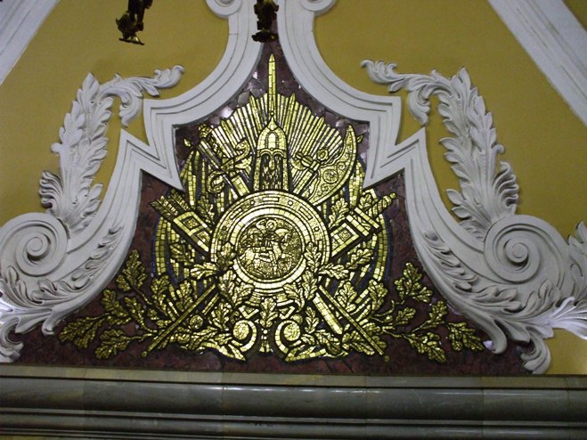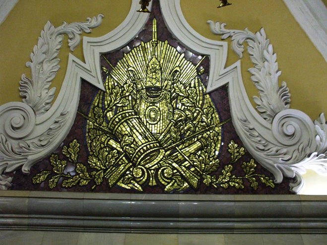 Kronleuchter, Fresken, Mosaike, Marmor: Sozialismustempel Komßomolskaja.