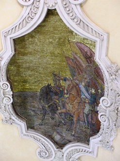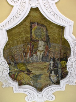 Kronleuchter und jeweils dazwischen die Mosaike.