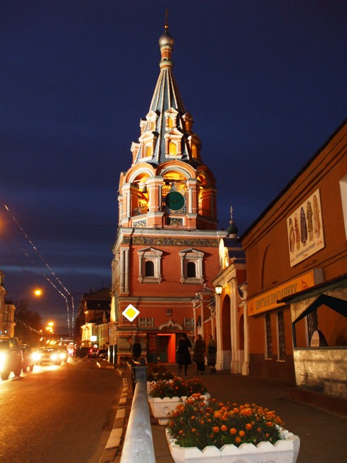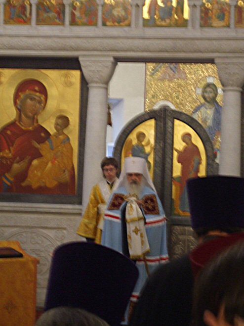 Zunächst waren wir noch in der orthodoxen Vesper in der akademischen Kirche, weil der aus Studenten bestehende Chor dort normalerweise sehr gut singt. An diesem Tage nur leider nicht... Zum Schluss waren wir noch in der Kathedrale Mariä Himmelfahrt, wo wir den Rest des abendlichen Gottesdienstes gehört haben. Hier sang der Chor gut. Es war auch ein Bischof anwesend, wie sich nachher herausgestellt hatte. Und eben darüber haben der Dozent, Andrej und ich uns auf dem Weg zum Bahnhof unterhalten: Ob das nun ein Bischof war oder nicht: Er hatte einen Bischofsstab, besondere liturgische Gewänder und stand der Liturgie vor. Ich hätte den Bischof jetzt daran erkannt, dass er ein Kreuz auf seinem Schleier trägt, was aber nicht der Fall war. Und so haben wir lange hin- und herdiskutiert. Letztendlich sind wir an dem Punkt gelandet, ob ein orthodoxer Bischof immer ein Bistum hat. Die Antwort lautet: Hat er, da er auch immer den Namen einer Stadt oder einer Region im Namen trägt. Es gibt also keine Titularbischöfe. Unser Dozent ließ aber offen, ob es tatsächlich so streng gehandhabt wird.