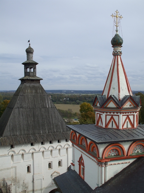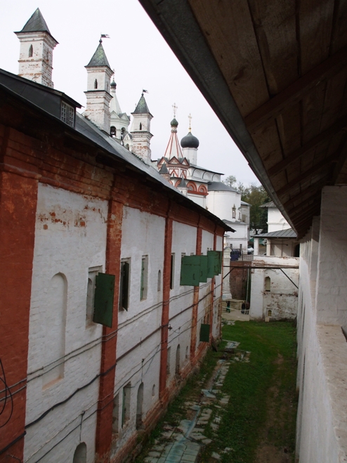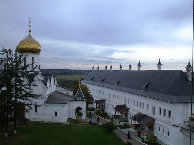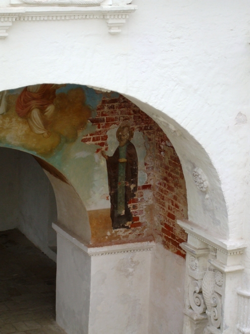 Am Bahnhof haben wir dann ganz knapp einen Zug verpasst, ein Phänomen, dass sich noch den ganzen Tag durchziehen sollte. Im Zug habe ich zunächst etwas zu Mittag gegessen. Erst haben wir ein wenig auf dem Flohmarkt vor dem Kloster geschaut und sind dann ins Kloster hineingegangen und haben es uns in Ruhe angeschaut. Dabei konnte der Dozent der Uni sehr viel Interessantes und Neues erzählen. So ist die Schutzmauer um das Kloster eine Kopie der Mauer von Kitai Gorod in Moskau, die heute nicht mehr erhalten ist. Und woher der Name Kitai Gorod - also China-Stadt - kommt, wusste er auch nicht. Nur hat sie nichts mit dem Kommunismus zu tun oder ist ein Viertel, wo Chinesen lebten.