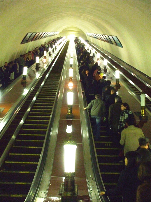 Heute bin ich extra ein bisschen eher aufgestanden, um am Tagebuch zu schreiben, weil ich die letzten Tage gar nicht mehr vernünftig dazu gekommen bin. An der Elektritschka-Station Pererwa sollte mich dann später eine fast etwas ungewöhnliche Situation ereilen: Ich habe den Zug einfahren sehen in der Ferne, allerdings nur durch die Gitterstäbe der Unterstellmöglichkeit der Station. Als er dann fast auf meiner Höhe war, habe ich groß gestaunt: Der Zug kam auf dem gegenüberliegenden Gleis angefahren, auf dem normalerweise die Züge von Moskau weg fahren. So musste ich dann schnell über die Brücke rennen, um den Zug noch zu erreichen. Und wer die Brücke und ihre Tücken kennt, weiß, dass das nicht unbedingt ungefährlich war, da sie doch so einige Stolperfallen enthält. Eine Lautsprecherdurchsage gab es nicht - wohl auch nicht für die Fahrgäste auf den anderen Stationen, da die genauso eigenartig schauten. Ich frage mich allen Ernstes nur, wie die Russen da so ruhig bleiben, denn in Deutschland hätte das Personal böse Schelte abbekommen.