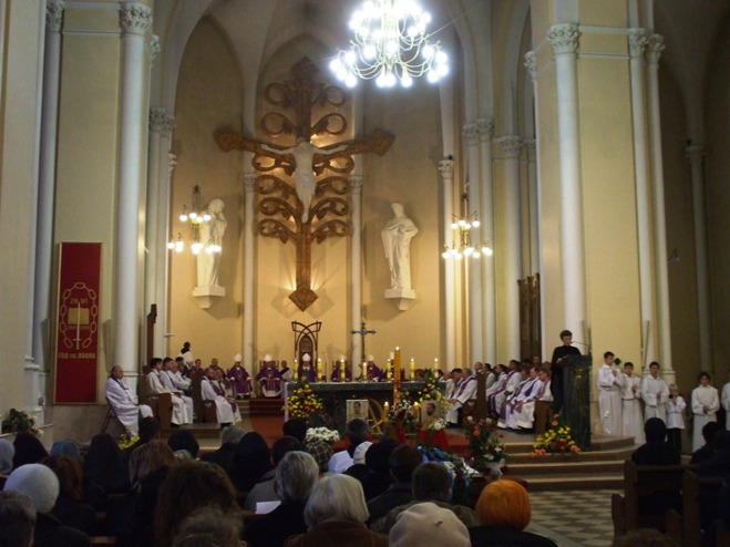 So bin ich dann im schnellstmöglichen Tempo zur katholischen Kirche gefahren, wo ich noch ein kleines Kreuz und Gebetbuch in dem kleinen Laden bei der Kirche gekauft habe - als Geschenk für Vater Alexej. Ich war dann etwas zu spät in der Heiligen Messe und habe ich zuerst gewundert, warum ich nur Messdiener und keine Priester sehe, gerade aber die Lesung gelesen wurde. Die Priester saßen alle weiter hinter dem Altar bei dem Erzbischof Pezzi, den ich dann heute zum ersten Mal in der Heiligen Messe erleben konnte. Anschließend fand noch eine Prozession durch die Kirche statt, die ich auch mitgemacht habe. So langsam kann ich auch ohne Gesangbuch die ersten Gesänge mitsingen! Während alle anderen das Lied "Großer Gott wir loben Dich" auf Russisch gesungen haben, habe ich mir allerdings die deutsche Version genehmigt.