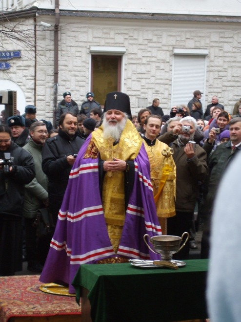 Wie verabredet haben Elena und ich uns in der Metro getroffen und sind dann ins Kloster gelaufen. Es dauerte auch nicht lange, bis wir herausgefunden hatten, in welcher Kirche Vater Alexej zum Priester geweiht werden würde und so haben wir uns einen Platz weit vorne gesichert, mit einem guten Blick auf den Altar. Elenas Stimmung war allerdings etwas betrübt, weil keiner aus ihrer Kirchengemeinde, aus der Vater Alexej auch stammt, zu sehen war - auch nicht seine Frau, auch wenn das so kurzfristig bekannt wurde.