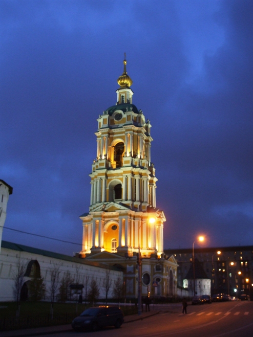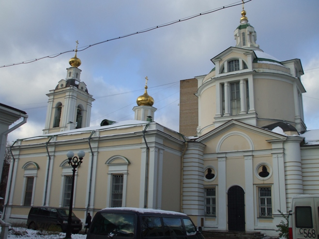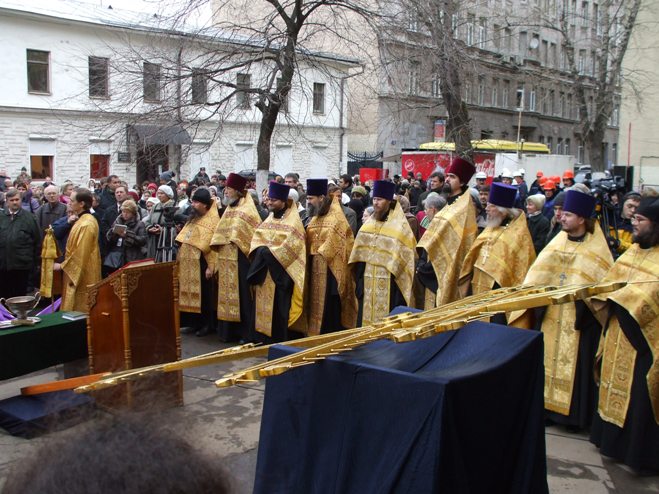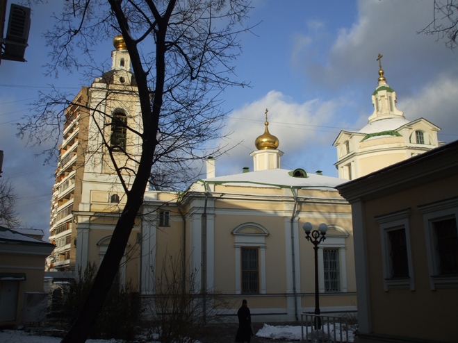 Nun habe ich gestern gar nicht mehr gemerkt, dass ich ja seit gestern schon drei Monate hier in Moskau bin. Es ist für mich wirklich unglaublich, wie die Zeit vergeht. Ich möchte dies nun zum Anlass nehmen und meine Fakultät ein wenig näher beschreiben. Mittlerweile kenne ich das Leben hier recht gut und möchte einfach etwas dazu erzählen - eigentlich genau das, was ich einigen schon in Briefen und E-Mails geschrieben habe. Wenn ich morgens das Universitätsgelände durch das Eingangstor betrete, dann bekreuzige und verneige ich mich zuerst vor der Kirche und dann gehe an bunten Blumenbeeten - zumindest war es im Herbst so, an einem Haus und Brunnen vorbei zum Eingang eines Gebäudes, das ein wenig alt aussieht, öffne die schiefe Türe, die sich dann knarrend und quietschend wieder schließt und mit einem Rumms ins Schloss fällt. Im Haus muss ich ein wenig aufpassen, dass ich auf dem alten Fußboden mit seinen Dellen, Macken und Unebenheiten nicht falle und gehe die alte Treppe hoch, die in den Tschitalnij Sal (ein Vorleseraum, der so etwa die Größte eines Klassenzimmers hat) führt. Auch dort muss ich wieder achtgeben, denn die Stufen aus Stein sind an einigen Stellen entweder locker oder ausgetreten. Die Schwenktüre zum Tschitalnij Sal klemmt immer ein wenig, so dass man nicht genau weiß, ob sie abgeschlossen oder offen ist. In diesem Raum hängen Tapeten aus den 70er Jahren, der Fußboden ist ebenso alt und von dem ständigen Gebrauch schon ganz kaputt, ausgetreten und an vielen Stellen geflickt, auf der Fensterbank stehen viele Blumen und die Stühle und Tische haben auch ihre besten Zeiten hinter sich. Über der Tafel stehen ein paar Ikonen, wie in jedem Raum in der Universität. Kommt der Dozent in den Raum – meist ist es ein Priester, dann singen wir zunächst ein Gebet und dann beginnt der Unterricht. Er endet auch mit einem Gebet. Dies finde ich übrigens sehr gut, es ist doch eine theologische Fakultät. Die Fenster sind auch schon sehr alt und an ihnen war einmal eine elektrische Einbruchsicherung befestigt, die jetzt aber außer Gebrauch scheint, zumindest sind die meisten Kontakte nicht angeschlossen und die Drähte hängen vor dem Fenster herum. Betrachtet man die Fenster, so wirkt die Einbruchsicherung ziemlich skurril.