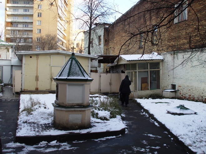 Der "Heilige Brunnen" und der Eingang in das Gebäude, das den Tschitalnij-Sal beherbergt.