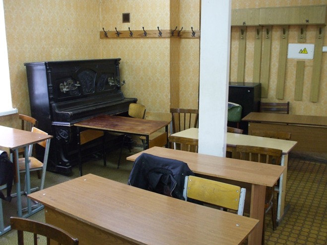 Das Gebäude, in dem die Stalowaja untergebracht ist, zeigt dagegen ein völlig anderes Bild: Es ist sehr sauber und ordentlich ausgebaut, hier ist fast nichts krumm und schief und alles macht einen sehr gepflegten Eindruck. Unten im Keller findet sich die Garderobe, in der entweder Nina oder Feofina sitzen. Ist Letztere dort, dann muss man sich im Flur ruhig verhalten, schon dort die Jacken und Mäntel ausziehen, den Rucksack auf der Bank ablegen und dann erst die Jacke in der Garderobe auf an die Haken hängen. Feofina sitzt dann meistens in ein Buch vertieft oder hört in der Ecke mit der Steckdose Radio und auf dem Tisch stehen Kerzen, die brennen und dem Raum so eine gemütliche Atmosphäre verleihen. Bei Nina ist es ganz anders: Ich habe anfangs immer meine Sachen auf der Bank liegen lassen, wenn sie da war. Nachher musste ich sie dann immer in der Garderobe suchen, da Nina sie in ihre Aufsicht genommen und irgendwo in die Ecke gestellt hat. Wir dürfen dann in der Garderobe reden und singen und auch die Jacken können wir dort ausziehen. Dann herrscht dort immer eine fröhlichere Stimmung und Nina freut sich, dass sie so viel Leben um sich drum zu hat. Und ein kleines Schwätzchen mit Nina gehört auch auf die Tagesordnung wenn sie da ist. Sie verbreitet auch eine gemütliche Atmosphäre, aber eine viel herzlichere.