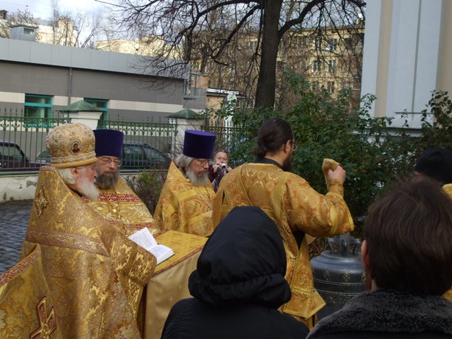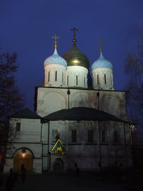 Nach der Dogmatikvorlesung war ich also zunächst in der Stalowaja und dann im Internet. Vor dem Essen habe ich Elena kurz getroffen, die mir nur sagte, dass wir uns um halb vier vor der Kirche treffen würden und dass sie kein Handy dabei hätte. Dann war sie aber auch schon wieder verschwunden. Ich war jetzt in der festen Überzeugung, dass wir uns vor ihrer Kirchengemeinde treffen, was ja auch unser Ziel sein sollte. Und so stand ich dann lange dort und habe auf sie gewartet. Zwischendurch kam Vater Alexej, den Diakon aus Kolomna, den ich mit Elena besucht habe und dann fingen die Glocken an zu läuten. Nach dem Läuten bin ich dann in die Kirche gegangen, weil ich dachte, dass sie dort hilft und mich vor lauter Arbeit vergessen hatte. Irgendwann kam Elena dann - sie hatte vor der Fakultätskirche gewartet. Ein kleines Missverständnis - genau an dem Tag, wo sie ihr Handy nicht dabei hat. So konnte ich dann Vater Alexej dienen sehen und Elena einige Psalmen "sprechen" hören - was eigentlich ein Sprechgesang ist. Dann sagte mir Elena zwischendurch, dass Vater Alexej vielleicht morgen zum Priester geweiht werden könnte, die Matuschka hätte da so eine Vorahnung. Nun wollte ich wenigstens einmal an diesem Wochenende in die Heilige Messe, da heute ja Allerheiligen ist - in der orthodoxen Kirche ist heute übrigens Allerseelen. Aus diesem Grund habe ich mich dann dazu entschieden, nach der orthodoxen Vesper noch in die katholische Kirche zu fahren. Kurz bevor ich dann abgefahren bin, wusste Elena, dass Vater Alexej tatsächlich morgen zum Priester geweiht wird. Das wollten wir beide uns nicht entgehen lassen und so haben wir uns für den nächsten Tag um halb neun in der Metro-Station Sportivnaja in der Nähe des Novodevicny-Klosters, wo ich eine Woche zuvor war, verabredet.