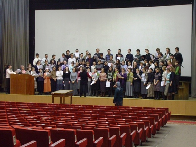 Und es gab eine kleine Überraschung heute: Der Wachposten am Tor hielt heute Post für mich bereit - meine Oma hat mir geschrieben. Da habe ich mich richtig drüber gefreut und ihr gleich ein paar Zeilen zurück geschrieben. So werde ich morgen gleich einen Abstecher zur Post machen und den Brief dort abgeben! Dennoch möchte ich noch erwähnen, dass nicht nur ich überrascht war: Zwei Studentinnen, mit denen ich heute gemeinsam in einem Kurs studiert habe, waren sehr verwundert, dass ich im Chor singe und dazu auch noch auftrete. Und dann kamen natürlich die Fragen, wie ich das sprachlich mache, vor allem dann, wenn die Lieder in kirchenslawischer Schrift sind. Ich muss sagen, dass das singen einfacher als das Sprechen ist. Und die etwas andere Schrift lesen klappt mittlerweile auch ganz gut, wenn auch noch stockend.