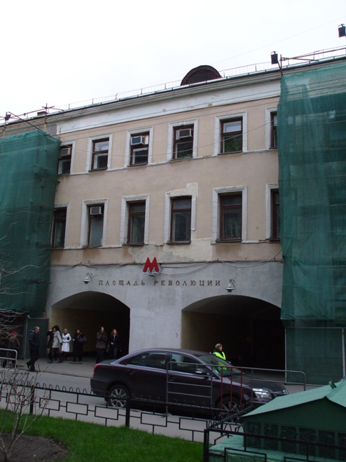 Bescheiden und unauffällig sieht die Metrostation "Platz der Revolution" von außen aus