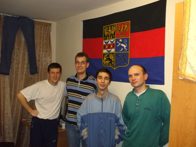 Meine Freunde im Wohnheim: Oleg, Dmitri und Pjotr.