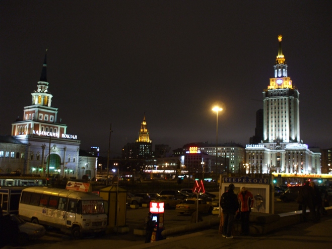 Der Kasansker Bahnhof (links), das Hotel "Leningrad" und mittig das "Bolschewiki", wo der feine Herr teure Anzüge kaufen kann.