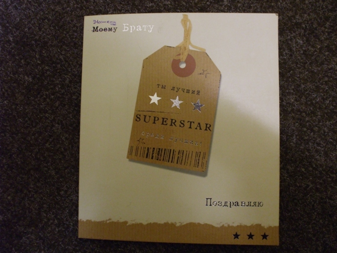 Die Vorderseite: "Unserem Bruder. Du bist der beste Superstar. Wörtlich: Ich gratuliere Dir." (Gemeint ist: "Wir gratulieren Dir. ")