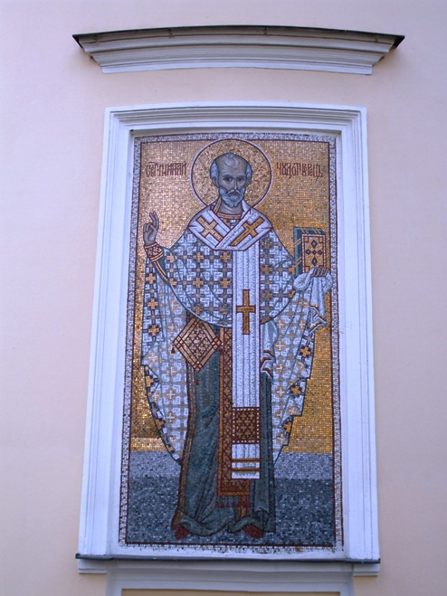 Mein erster Weg führte an diesem Morgen in die Göttliche Liturgie, weil heute das Patronatsfest in der Fakultätskirche anstand - es ist ein und derselbe Heilige Nikolaus, den Orthodoxe und Katholiken verehren. Nur dass er aus meiner (katholischen) Sicht ein wenig ungewöhnlich aussieht. So wird er in unserer Kirche zwar als Bischof dargestellt, aber z.B. nicht mit langem Bart und ohne Mitra - wobei eine Mitra in der orthodoxen Kirche noch einmal anders aussieht als in der Katholischen. So hat bekommt er ein ganz anderes Erscheinungsbild und ich wusste bis vor kurzem gar nicht, dass es der Nikolai - so der hiesige Name - ist, der bei uns die Geschenke bringt. Zum Glück kann ich ja mittlerweile immer besser die kirchenslawische Schrift lesen. Während der Liturgie bei der Beichte schäpperte und klirrte es plötzlich ganz laut. Ich weiß nicht viel, was passiert ist, aber angeblich soll ein Priester zusammengebrochen sein. Vom Geräuschpegel her muss er wenigstens einen Kerzenständer mitgerissen und auf eine Vase oder in eine Ikone gestürzt sein. Es klang zumindest schrecklich und die Kirche innehalten lassen. Später war dann der Sanitätsdienst da.