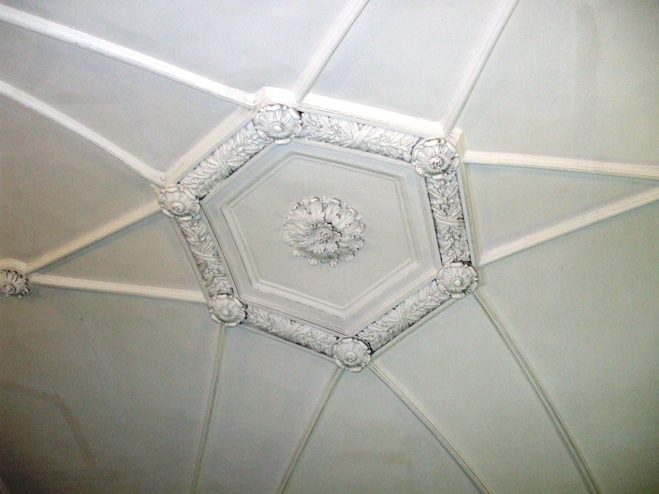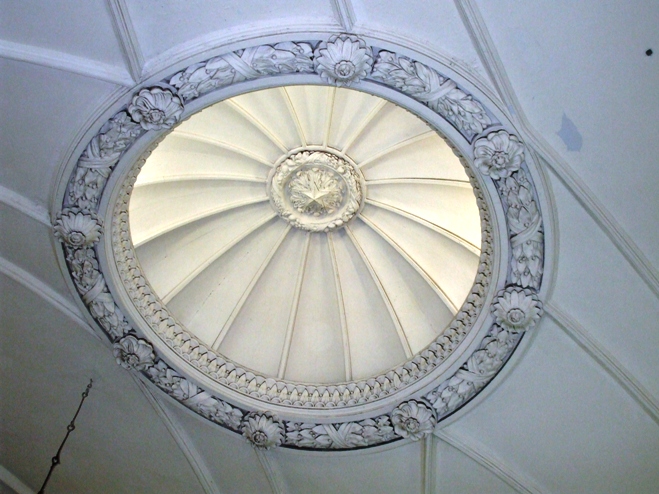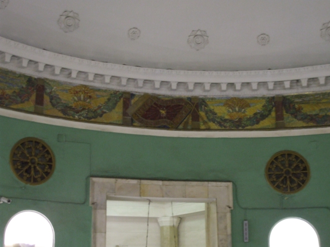 Die Eingangshalle, die mit einer Kuppel, Mosaiken und Kupferleuchtern ausgestattet ist.