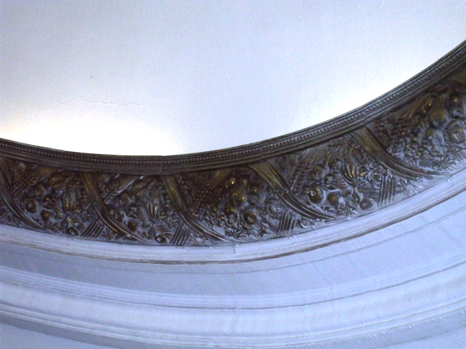 Mit einem solchen Rand wird die Kuppel im Eingangsbereich der Rolltreppe verziert.