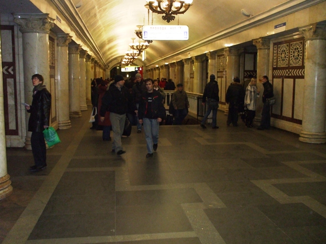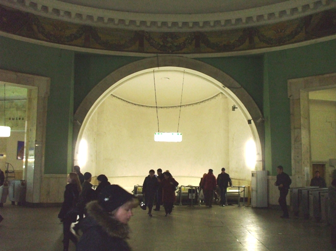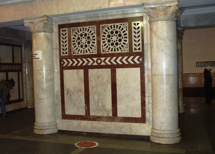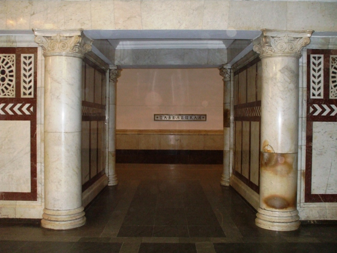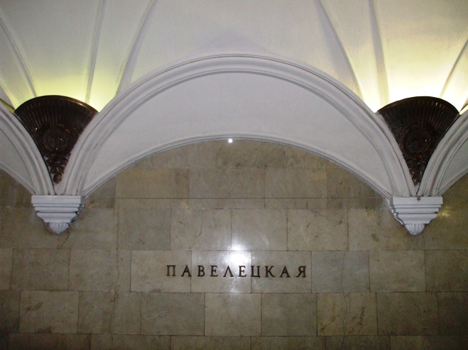 Auf dem Weg zur Universität steige ich oft an der Station "Paweljezkaja" aus der Metro. Diese möchte ich nun einmal näher vorstellen. Sie ist eigentlich eine der Stationen, die weniger schmuckvoll und prächtig sind, aber im Gegensatz zu den Stationen in den Außenbezirken noch prunkvoll ist.