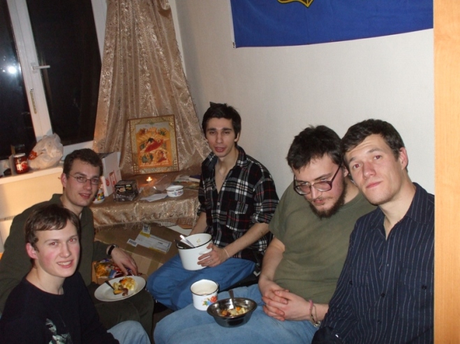 Weihnachtsfeier mit Evgenij, Dmitri, Stephan, Oleg und dem fotografierenden Pjotr.