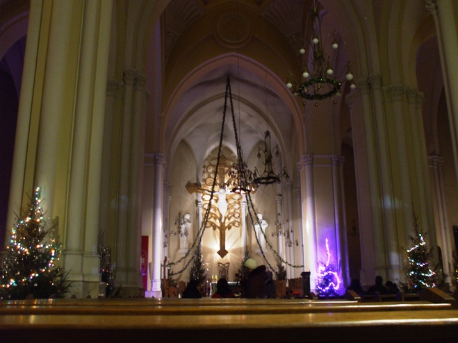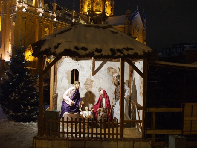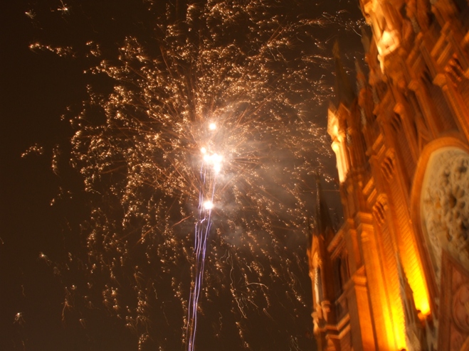Dann war ich pünktlich in der Heiligen Messe um 19 Uhr und nach und nach trudelten einige Kommilitonen ein, Lena saß schon in der Bank. Leider habe ich dann mit Stephan alleine gestanden, weil sich in der Kirche alles verlaufen hat - es war einfach viel zu voll. Mit Elena bin ich dann nach draußen gegangen, wo die Priester das Jesuskind in die Krippe gelegt haben. Und kurz darauf ging ein Feuerwerk los - Lena und ich haben uns nur noch verständnislos angesehen, haben wir doch ein ganz anderes Verständnis der Heiligen Nacht - ich kenne sie vielmehr als stille Nacht, so wie sie im Lied beschrieben wird.