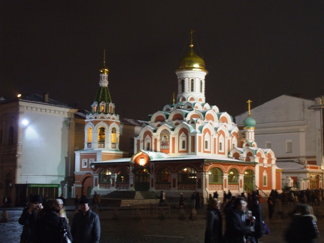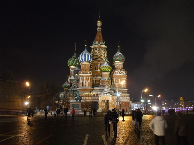 Und so sieht die Basiliuskathedrale in der Nacht aus.