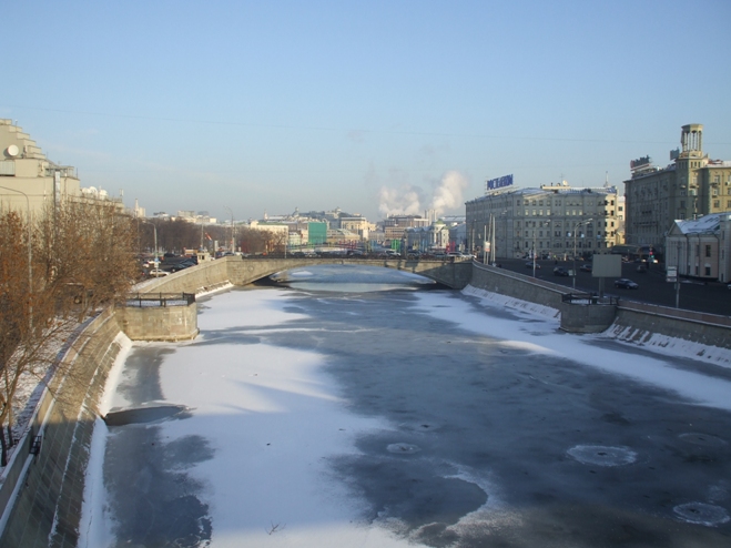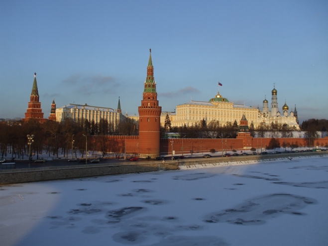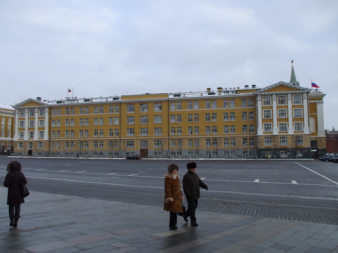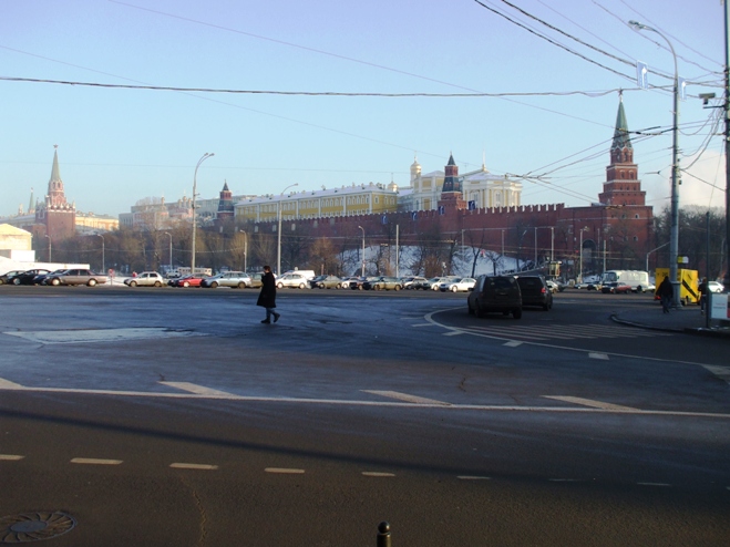 Nun ist es endlich soweit, heute sind Sonja und Ludwig, meine ersten Gäste, angekommen! Um das ein wenig vorzubereiten, bin ich heute etwas eher in die Stadt gefahren und habe mich ein wenig bei den Sehenswürdigkeiten rund um den Kreml kundig gemacht, wann diese aufhaben. Da heute das erste Mal seit Tagen die Sonne schien, habe ich gleich ein paar Fotos gemacht. Nach dem Mittagessen in der Stalowaja bin ich dann mit der Elektritschka zum Flughafen Domodedovo gefahren. Kurz nach dem Paveljetzker Bahnhof habe ich dann aus dem Zug im Gleisbereich eine Person gesehen, die wohl vor ein paar Stunden dort verunglückt sein muss, zumindest standen die Gliedmaßen in allerlei Richtungen und der Kopf wies eine große Platzwunde auf. Da stand schon jemand dabei und die Miliz kam gerade dazu. Nun ist es hier nicht der Fall, dass die Leiche irgendwie verdeckt oder die Strecke gesperrt wird - alles läuft hier normal weiter. Im Flughafen Domodedovo habe ich dann einen Milizionär gefragt, wo denn die Fahrkartenausgabe sei. Er stand direkt daneben, wusste es aber genau so wenig wie ich. Ich war sehr überrascht, dass er mir sein Ticket geschenkt hat und dass er so freundlich war. So habe ich 200 Rubel gespart.