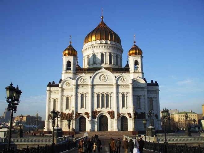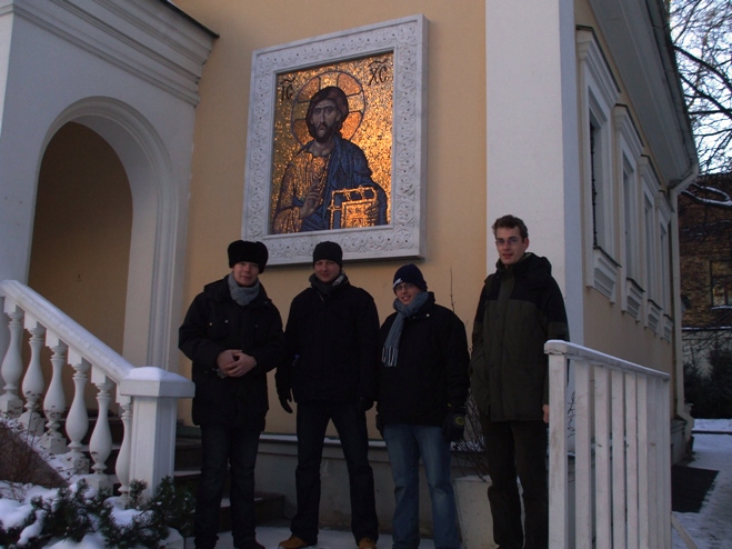 Anschließend sind wir zum Essen in die Mensa gefahren und haben dort gemütlich zu Mittag gegessen. Beim anschließenden Gang durch die Fakultät habe den beiden den Ort in Moskau gezeigt, an dem ich mich am allerliebsten aufhalte und wo ich mich wohl fühle. Als wir die Mensa verlassen haben, sangen ein paar meiner Kommilitonen am Ausgang russische Volksweisen und so haben wir genau einen Moment erwischt, der gezeigt hat, dass das Leben dort so schön und so ungezwungen ist. Wir haben uns auch die Nicolai-Kirche und danach die Studentenkirche, die Dreifaltigkeitskirche angeschaut. In dem Geschäft "Orthodoxes Wort", in dem ich oft meine Bücher und Studienmaterialien einkaufe, haben sich Ludwig und Sonja mit einigen Ikonen eingedeckt. Der Dame an der Kasse musste ich dann erst erklären, nachdem sie gefragt hat, welche Ikone wir suchen, dass das westliche Verständnis etwas anders ist. Während hier in Russland eine bestimmte Ikone gesucht wird, suchen wir "Westler" lieber eine Ikone, die für uns schön aussieht oder haben beispielsweise die Gottesmutter Maria im Kopf, suchen dann aber nach der Schönheit der Ikone aus.