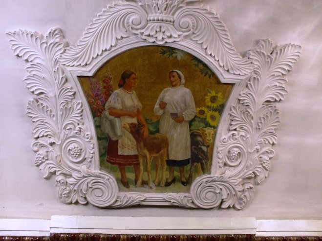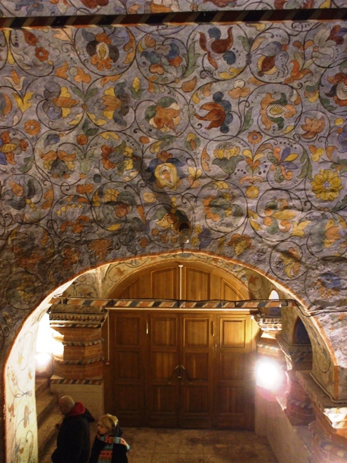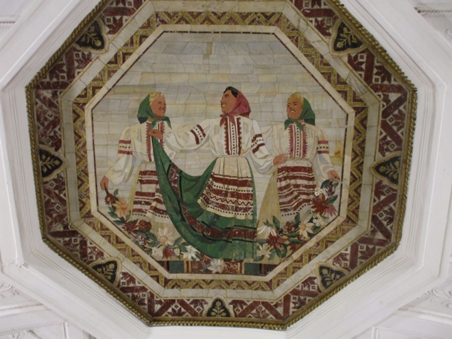 An den Decken werden weißrussische Szenen, Bräuche und Trachten gezeigt.