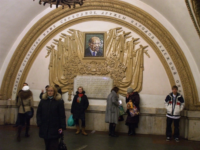 In der Kiewskaja der Refrain der Nationalhymne und Lenin.