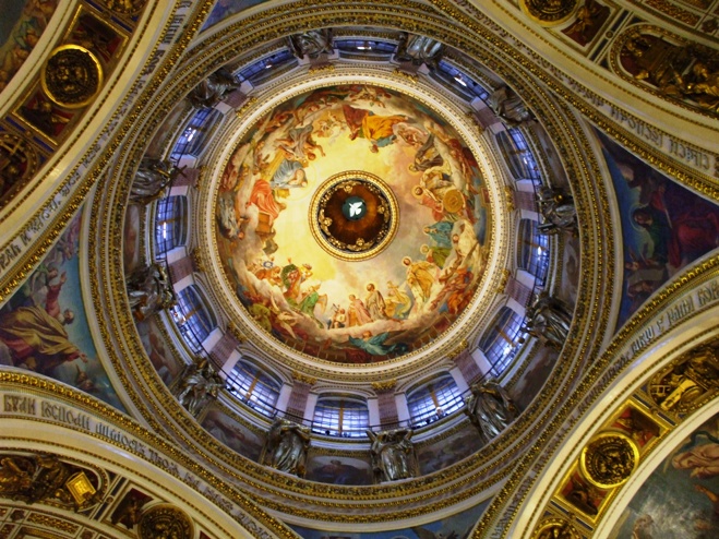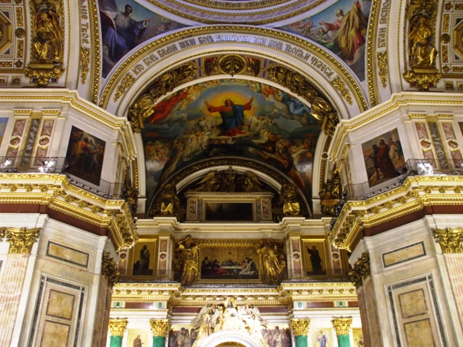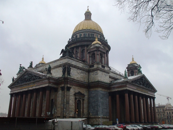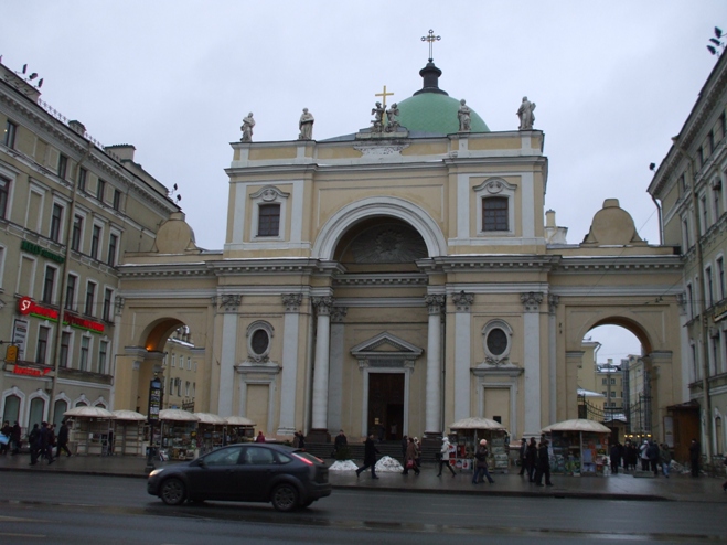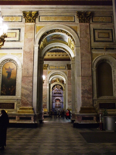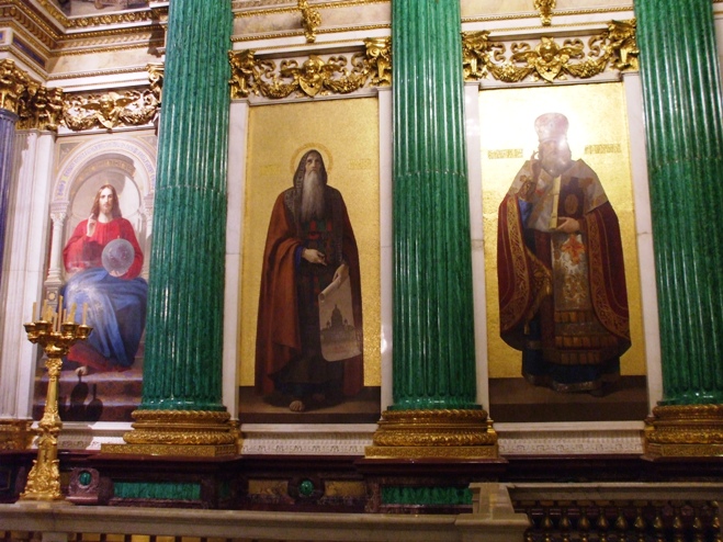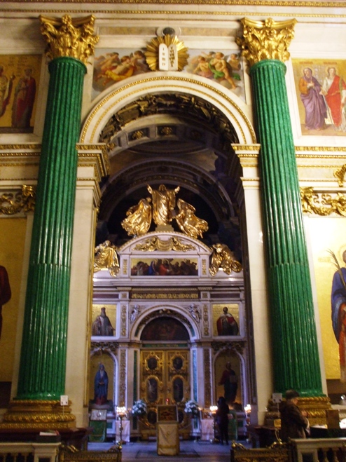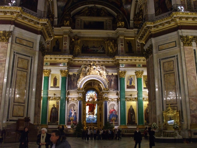 Anschließend wollten wir noch eine andere Kirche besuchen, die in der Nähe ist. Leider habe ich mich in der Straße vertan und wir sind zu unserer Überraschung bei der Isaaks-Kathedrale in der Nähe der Ermitage angekommen. Ich konnte zunächst gar nicht glauben, dass es die Kirche ist. So sind wir zurück zur Kirche gegangen, haben uns dort noch kurz auf dem Markt umgeschaut und haben uns dann an den gedeckten Tisch im Refektorium des Priesterseminars gesetzt, wo gerade das Tischgebet begonnen hatte. Und dann wurde mir beim Essen bewusst, dass wir einen Fehler gemacht haben, indem wir nicht jedes Mal zu Mittag gefahren sind, da die Küche hier sehr gut kocht und mir für mich ungewöhnliche Köstlichkeiten auf den Tisch stellte.