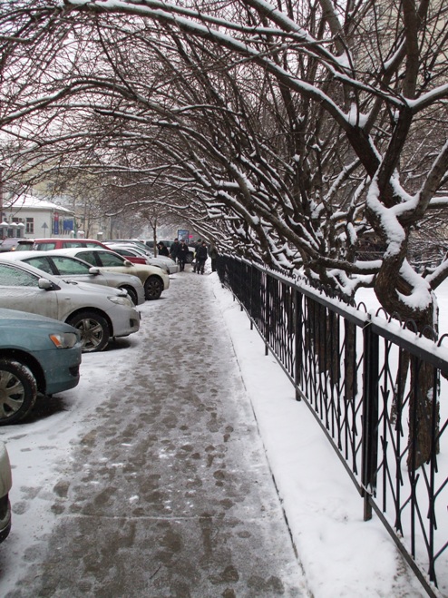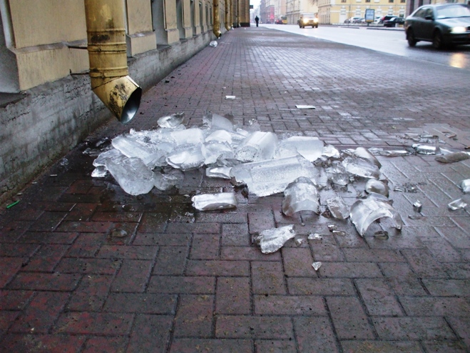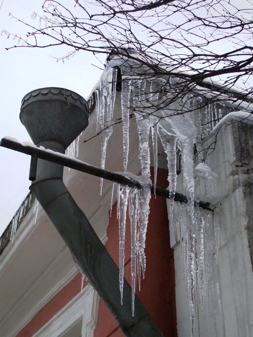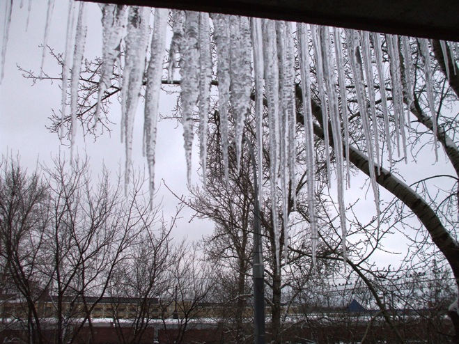 Das Wetter scheint wieder kälter geworden zu sein, zumindest hat das Thermometer am Wachhaus immer Temperaturen knapp unter Null Grad angezeigt. Gerade in den letzten Tagen sind die Eiszapfen an allen möglichen Häusern gewachsen - sie sind einfach nur beeindruckend. Aber leider auch gefährlich - man muss ziemlich aufpassen, dass man von Eis nicht erschlagen wird, dass von irgendwelchen Dächern herunterfällt. Dafür sind an einigen Stellen die Gehsteige gesperrt. Jetzt muss ich also nicht nur auf die Glätte achten, sondern auch noch auf Eis, das von oben herabfallen könnte. So wie Marcus mir in Sankt Petersburg erzählt hat, sind wohl ein paar Leute in diesem Jahr dort schon vom Eis erschlagen worden. Das bleibt mir hoffentlich erspart und vorbeugend will ich lieber gut aufpassen.