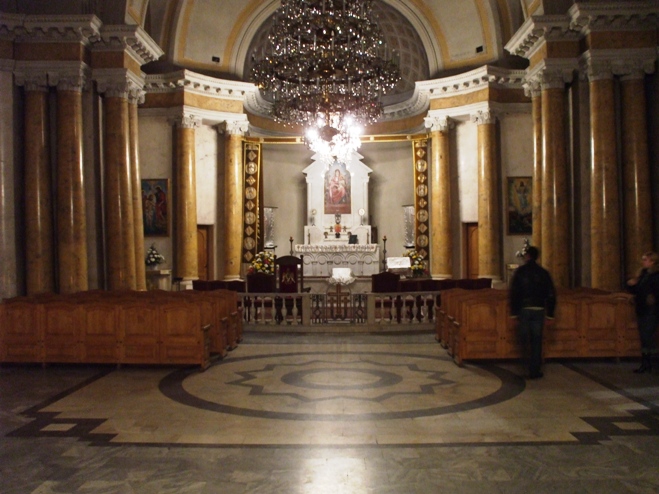 Nach dem Frühstück waren wir erst in der Heiligen Messe in der Gemeinde-Kirche, die beim Priesterseminar ist. Die Heilige Messe wurde sehr schnell gefeiert, so dass Elena und ich uns noch mit großen Augen angeschaut haben. Es wurden nur zwei Lieder gesungen und selbst das Glaubensbekenntnis ist weggefallen. Nach 25 Minuten war alles vorbei. Es war eigentlich schade, dass sich der Priester so wenig Zeit genommen hat, weil eine unheimlich schöne Atmosphäre in der Kirche geherrscht hat: Die Kirche war nur von einer Glühbirne am Altar und ein paar Kerzen erleuchtet - der Strom war an dem Morgen in der Kirche ausgefallen.