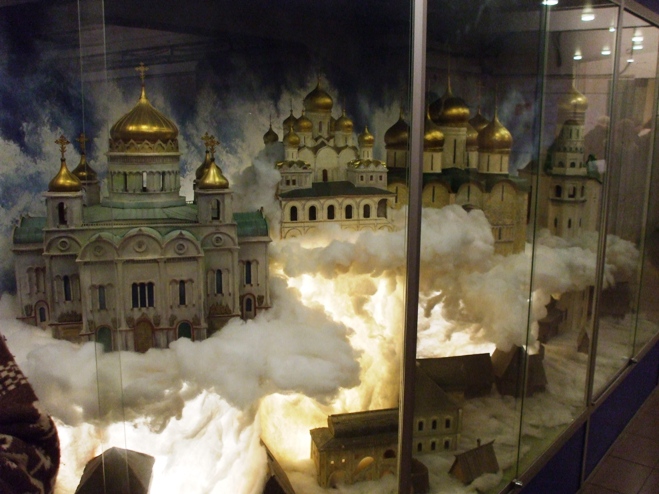 Kirchen in Miniturformat, die für den Film "Ivan der Schreckliche" benötigt wurden.