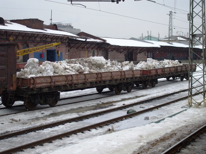 Als ich zurück in Pererwa war, habe ich dort im Rangierbahnhof eine interessante Fuhre gesehen: Ein Betonklotz wurde auf drei Güterwagen verteilt auf der Schiene transportiert. In Russland scheint vieles eine solche Größe zu haben, dass es bei Bedarf auf der Schiene transportiert werden kann. So habe ich hier schon Feuerwehrfahrzeuge, Kräne, Baufahrzeuge, Brückenteile, Maschinen und Maschinenteile und alles weitere Mögliche und Unmögliche auf Schienen gesehen. Und gerade das macht das Eisenbahn- und Transportwesen hier so interessant für mich als gelernten Speditionskaufmann: Die riesigen Entfernungen, die zwischen den Städten bewältigt werden müssen. Es ist quasi unmöglich und viel zu aufwendig, einen großen Kran auf einem Lastwagen von Moskau nach Irkutsk zu transportieren. So werden ihm die Räder abgenommen, gegebenenfalls auch noch der Kran an sich und dann wird alles auf zwei oder drei Güterwaggons verteilt abtransportiert. Aus dieser Sicht hat die Eisenbahn als Transportmittel für große und schwere Güter eine ganz große Bedeutung: Mit dem Schiff geht es kaum - schon gar nicht im Winter, mit dem Lastwagen ist es zu gefahrvoll und aufwendig, und mit dem Flugzeug zu teuer oder je nach Größe schier unmöglich. So bleibt letztlich nur die Eisenbahn als verlässliches und erschwingliches Verkehrsmittel.