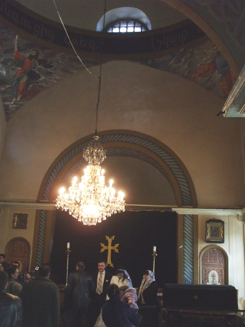 Zu 14 Uhr war ich dann wieder in der Kirche - dieses Mal zur Austragung des Grabtuches. Dieser Gottesdienst hatte zunächst etwas den Eindruck einer normalen Göttlichen Liturgie: Es gab einen kleinen Einzug mit dem Evangelium, es wurden Lesungen und das Evangelium (die Matthäuspassion) gelesen und der große Auszug fand dann mit dem Grabtuch statt, das anschließend verehrt wurde. Der Chor hat einen Gesang gesungen, von dem man sehr gut hören konnte, dass er aus einer anderen musikalischen Tradition bzw. Komponisten stammt. Auch dieser war wunderschön. Zum Schluss hatte ich das Glück, recht schnell zur Verehrung des Grabes zu kommen: Ich sollte einen Teppich aufrollen, der mich geradewegs zum Grabtuch führte. So hatte ich eigentlich nur eine ganze Schar Kinder vor mir.