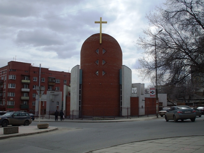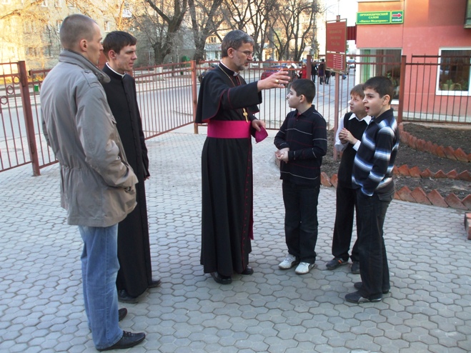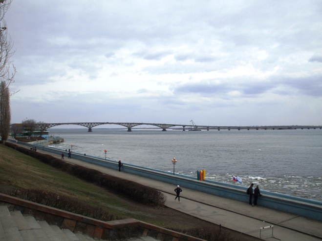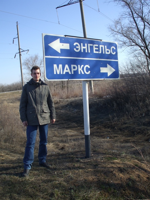 (15:15 Uhr) Der heutige Tag begann um 7:45 Uhr mit einem Oster(-fasten-)frühstück und anschließend sind wir, also Bischof Clemens, Ilja und ich, nach Marx gefahren in die Gemeinde, in der Bischof Clemens vor seinem Bischofsamt eingesetzt war. Die Fahrt dorthin war sehr interessant, zumal wir über die große Wolgabrücke gefahren sind. Die war schon sehr imposant zu überfahren. Die Fahrbahn ist zwar recht buckelig, aber die Aussicht prima. Und erst dann wird einem die Größe des Flusses bewusst. Auf der anderen Seite der Wolga liegt Engels und als wir Engels durchfahren hatten, konnte ich das "Wiesenufer" der Wolga betrachten: Es ist eine Landschaft, die Ostfriesland ein wenig gleicht, weil es total flach ist, es gibt Felder und Wiesen, kaum Bäume und es wehte in kalter Wind. Auf halber Strecke bremste Bischof Clemens auf einmal ab, wendete und fuhr zu einer Kreuzung zurück, um ein Foto von einem Straßenschild zu machen: Es zeigte an, dass der Weg nach Engels nach links abgeht und der nach Marx nach rechts. Ein Schelm ist, wer politisch denkt - radikal derjenige, der mit ein oder zwei Schüssen aus der Schrotflinte das Schild zerbeult hat. Auf der weiteren Fahrt sind wir an einigen Orten vorbeigekommen, die deutsche Namen tragen: ein Beispiel ist Krassnij Jar, das übersetzt Schönfeld heißt und über einen Fluss mit dem Namen Лизль - also "Liesl". Im Ortseingang von Marx konnte man schon gut den hohen Kirchturm der Gemeinde sehen - es is die erste katholische Kirche gewesen, die seit 1917 in Russland geweiht worden ist. Die Baugrube hat noch der heutige Bischof von Novosibirsk Joseph Werth ausgehoben, den Rest hat der damalige Pfarrer Bischof Clemens erledigt. Das Ergebnis ist eine sehr schöne und helle Kirche und gegenüber von Saratov ist es eine große Kirche. Zunächst haben wir beim Pfarrer dort Tee und Kaffee getrunken und zehn Uhr fing dann die Heilige Messe an. Auch hier bin ich recht leicht in die Gemeinde gekommen. Anschließend habe ich erst Vater Marcus und Ilja beim musizieren zugehört - Vater Marcus am Schlagzeug und Ilja an der Gitarre. Dann hat mich Bischof Clemens gerufen und wir sind im Auto ein wenig durch den Ort gefahren und so habe ich Marx kennen gelernt. Er hat mir die evangelische und orthodoxe Kirche gezeigt. Erstere hat eine große Kirche mitten im Stadtzentrum und die Orthodoxen haben eine alte Schule völlig umgestaltet, so dass sie als solche nicht mehr zu erkennen ist. Die Schule hat sogar einen Glockenturm und eine Kuppel bekommen. Wir waren auch am Wolgaufer - an einer Stelle, wo bis vor einigen Wochen noch Lastwagen und Autos über das Eis gefahren sind. Früher war es so, dass einige Gemeindemitglieder nur im Winter zur Kirche kommen konnten - wenn die Wolga zugefroren war. Das andere Ufer sieht recht nahe aus - dadurch, dass es aber sehr hoch ist, wirkt es nur so - in Wirklichkeit ist es mehr als vier Kilometer entfernt. Zum Schluss sind wir noch zu einer alten Frau gefahren - eine, die noch deutsch spricht. Als wir klingelten haben, war die Familie gerade am essen und sofort wurden uns Teller, Besteck und Gläser dazugestellt. So haben wir einen kleinen Happen mitgegessen, uns kurz unterhalten und mussten dann schon wieder aufbrechen. Die Tochter der Frau hat die ganze Nacht gekocht - allerdings ein orthodoxes Fastenessen, das überwiegend aus Fisch bestand, weil die orthodoxen Nachbarn noch zu Gast kommen wollten. "Richtig" zu Mittag haben wir dann bei den Marxer Schwestern gegessen und hier habe ich das Fasten kurz gebrochen. In der Suppe waren Fleischklöße, von denen ich dann drei gegessen habe. Da ich mich aber als Reisenden gezählt habe, war es allenfalls ein halbes Fastenbrechen. Und auch der Kuchen anschließend zähle ich unter die Kategorie "für die Reisenden zu Lande, zu Wasser und in der Luft", wie es in einigen Ektenien der Liturgie heißt.