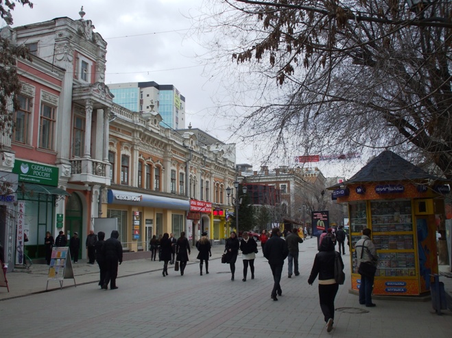 An diesem Tag war Moskau noch völlig ausgestorben, denn da der gestrige Feiertag auf einen Sonntag gefallen ist, wurde der Montag als arbeitsfreier Tag einfach einen Tag nach hinten verschoben. Für mich war es angenehm, weil kaum Stress in der Metro und auf den Straßen herrschte. So konnte ich ganz ruhig und entspannt in einem Hotel nach Preisen und Konditionen fragen und anschließend ins Internet und einkaufen gehen. Einziger Schwachpunkt an der Ruhe war das Wetter: Heute hat es zuerst geschneit und dann hat es den ganzen Tag über getaut, so dass die Straßen voll Wasser und Matsch waren, so dass man fast ein Schiff gebraucht hätte. Zum Glück bin ich nicht ausgerutscht und auch nicht von Autos nass gespritzt worden.