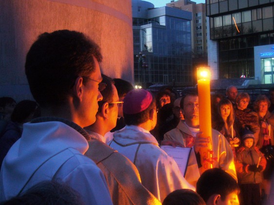 Momentan grüße ich gerne die Orthodoxen mit dem Ostergruß "Christus ist auferstanden". Das ruft sehr interessante Reaktionen hervor. Vater Alexeij, der Diakon, stutzte erst gewaltig und lachte dann, ein anderer Student sagte mir geduldig: "Nein, Andrej, das ist noch nicht, erst am Sonntag." Und andere sagen oft: "Ach ja, ihr Katholiken seid ja eher als wir..."