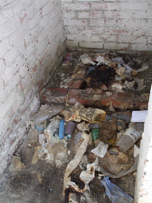 Und dann ist da noch die reparierte Treppe, die zur Brücke über den Güterbahnhof zur Elektritschkahaltestelle Pererwa führt: Sie ist eigentlich noch gefährlicher als ohnehin schon geworden, weil es jetzt noch größere Eisenkanten an jeder Stufe gibt, die sicherlich zwei Zentimeter oder sogar mehr hoch sind. Menschen mit kleinen Füßen haben das Problem, dass sie daran stolpern können, bei meinen Füßen muss ich aufpassen, dass ich nicht irgendwo mit den Absätzen hängen bleibe. Und dann ist da einerseits noch eine Lasche ins Beton gegossen, die nicht wie die anderen umgebogen ist. Das ist eine sehr gefährliche Stolperfalle, da die Lasche um die etwa zehn Zentimeter hoch ist und sich genau in der Laufbahn befindet, wo das Treppengeländer ist. Oben passt die Treppe nicht richtig an die Brücke und dieser 30cm-Spalt ist notdürftig mit einer Metallplatte abgedeckt, die noch nicht einmal befestigt ist. Wenn sich jetzt noch Regenwasser in den Stufen sammelt, dann hat die russische Eisenbahngesellschaft es tatsächlich geschafft, rückwärts zu renovieren: Vorher war der Zustand zwar schon arg bedenklich, aber jetzt scheint es noch katastrophaler auszusehen.